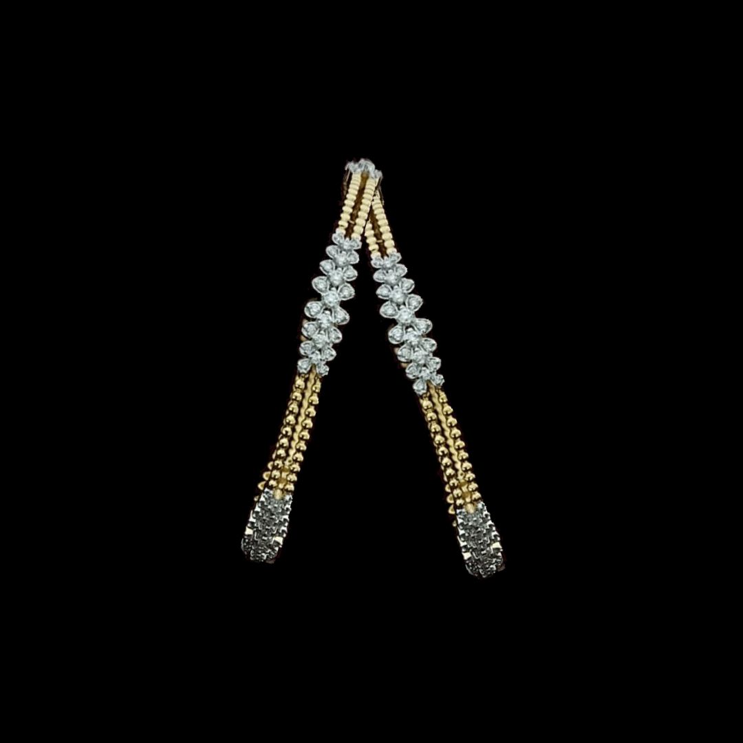 The slim and simple diamond bangles from Kothari Jewellers are adorned with exquisite diamonds that radiate a sparkling brilliance. Each diamond is carefully selected for its exceptional clarity and brilliance, ensuring that your bangle catches the light and dazzles from every angle. The diamonds are expertly set in a way that maximizes their brilliance, creating a captivating and eye-catching piece of jewelry.